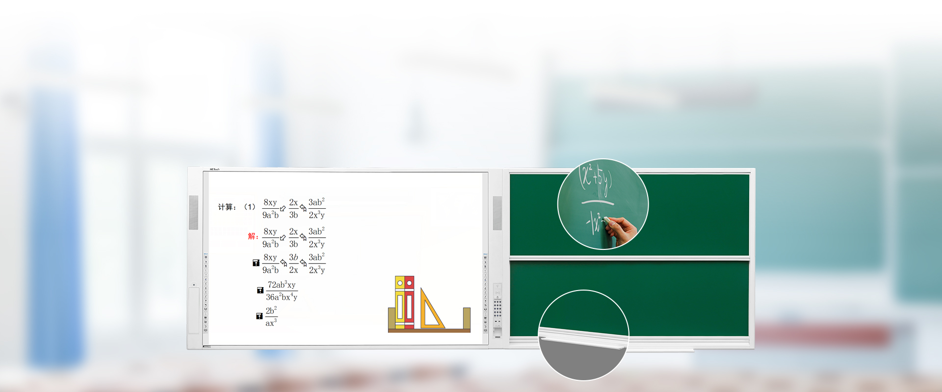 可根据不同大小教室的需求,左右扩充绿板/白板;绿板/白板采用搪瓷面板材质和工艺,