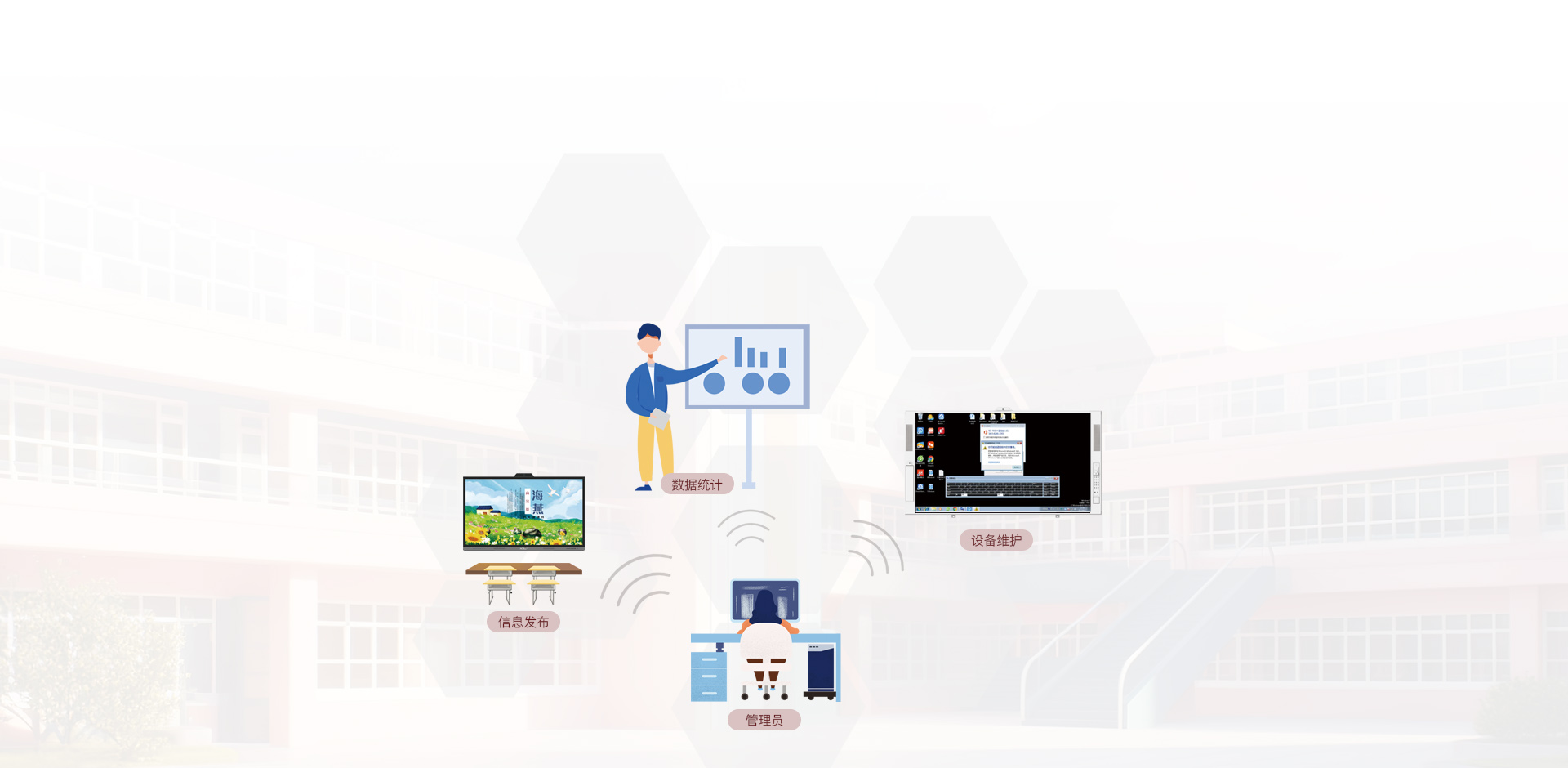 华创智航远程集控系统依托局域网或云端,方便地对分散在教室里的电脑、液晶一体机、智慧黑板、白板一体机等设备,